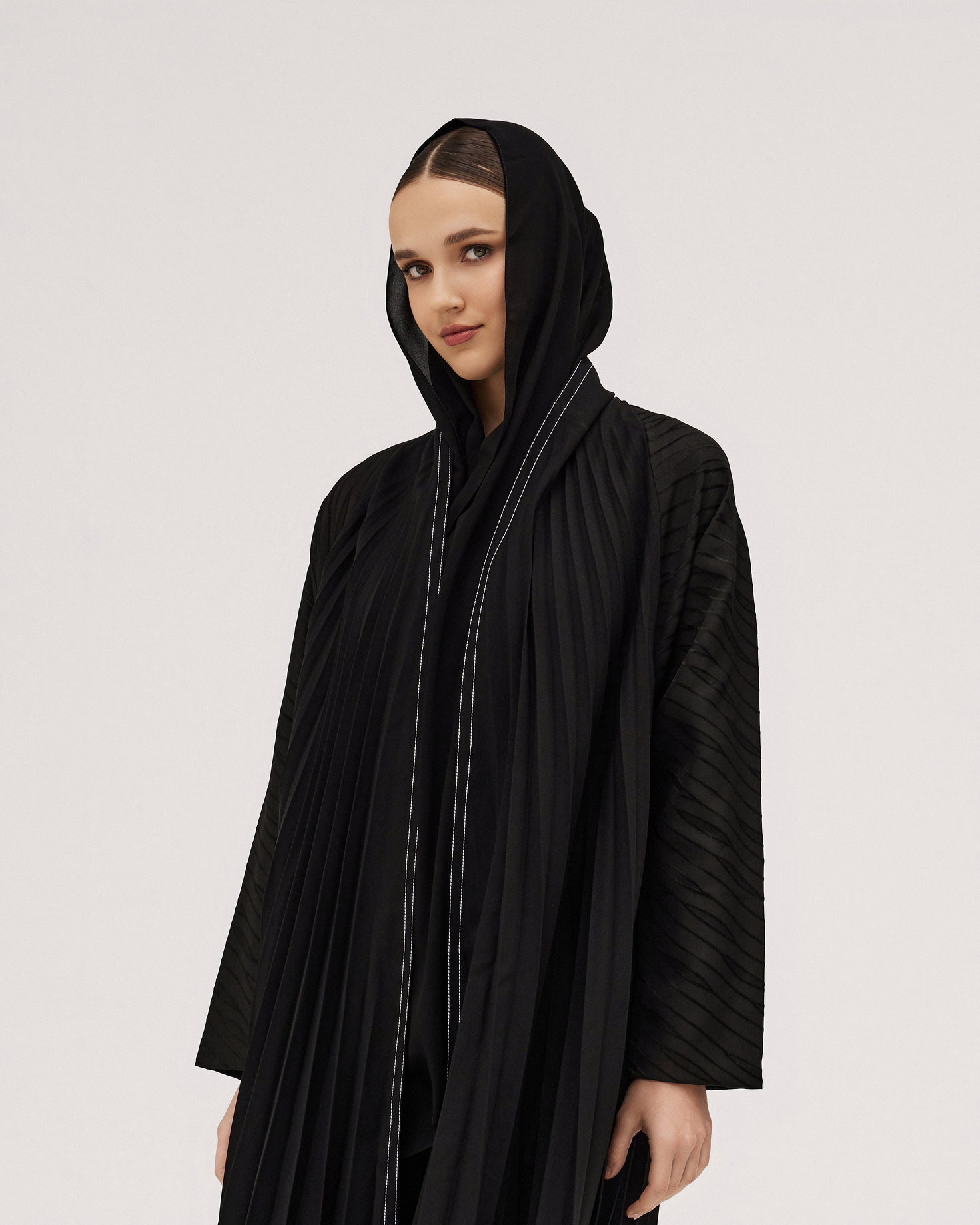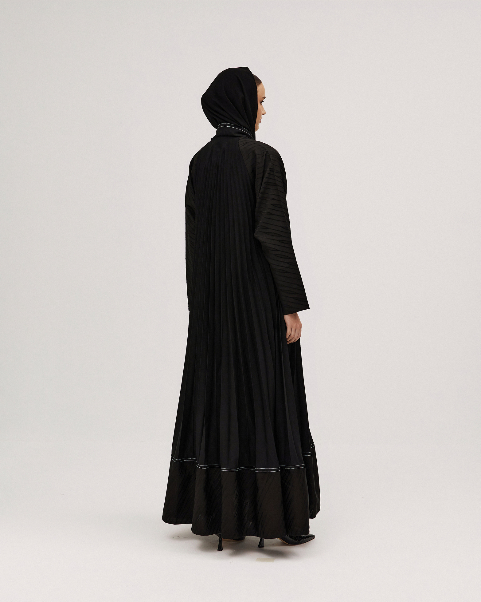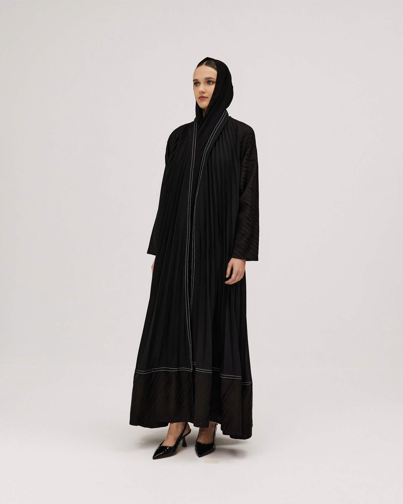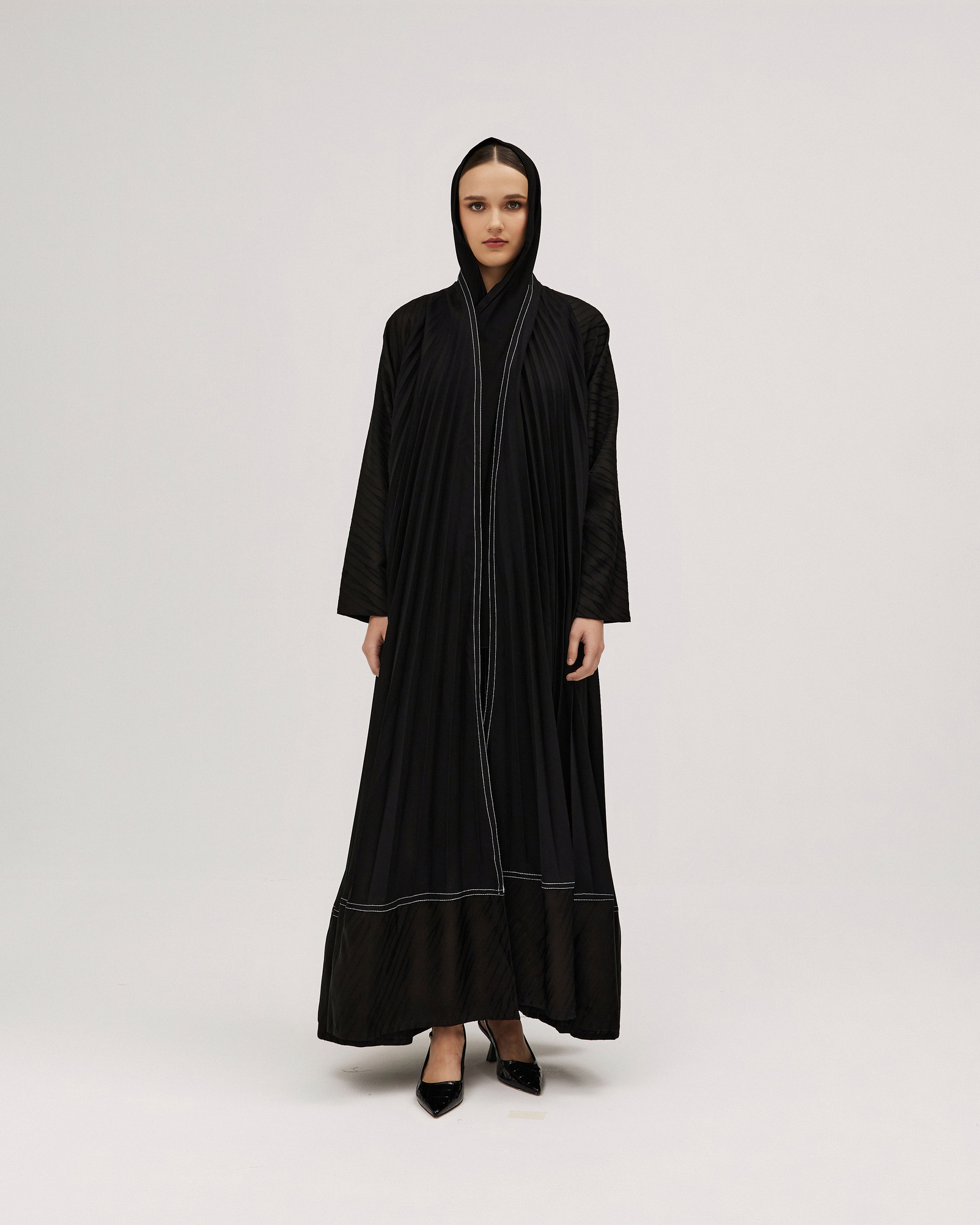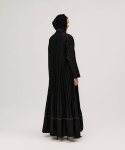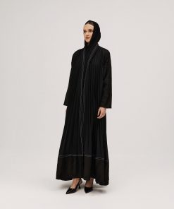 عبايات سوروزيه – عباية سادة انترنت دبل كلوش مزينة بخطوط طولية – لون أسود