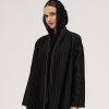 عبايات سوروزيه – عباية انترنت دبل كلوش سوداء مزينة بخطوط طولية مع فصوص سوداء على الأكمام