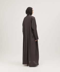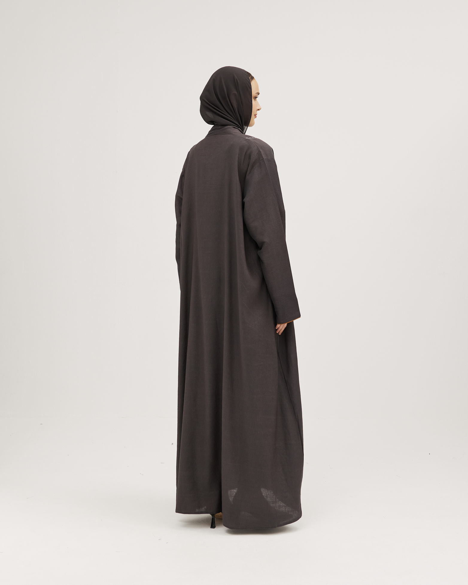 عبايات سوروزيه – عباية كتان كلوش عملية بجيوب وياقة مزينة بأزرار – بيج