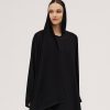 عبايات سوروزيه – عباية باربي كلوش لف بكم مقلوب وبطانة مشجرة مغطاة بشيفون – سوداء
