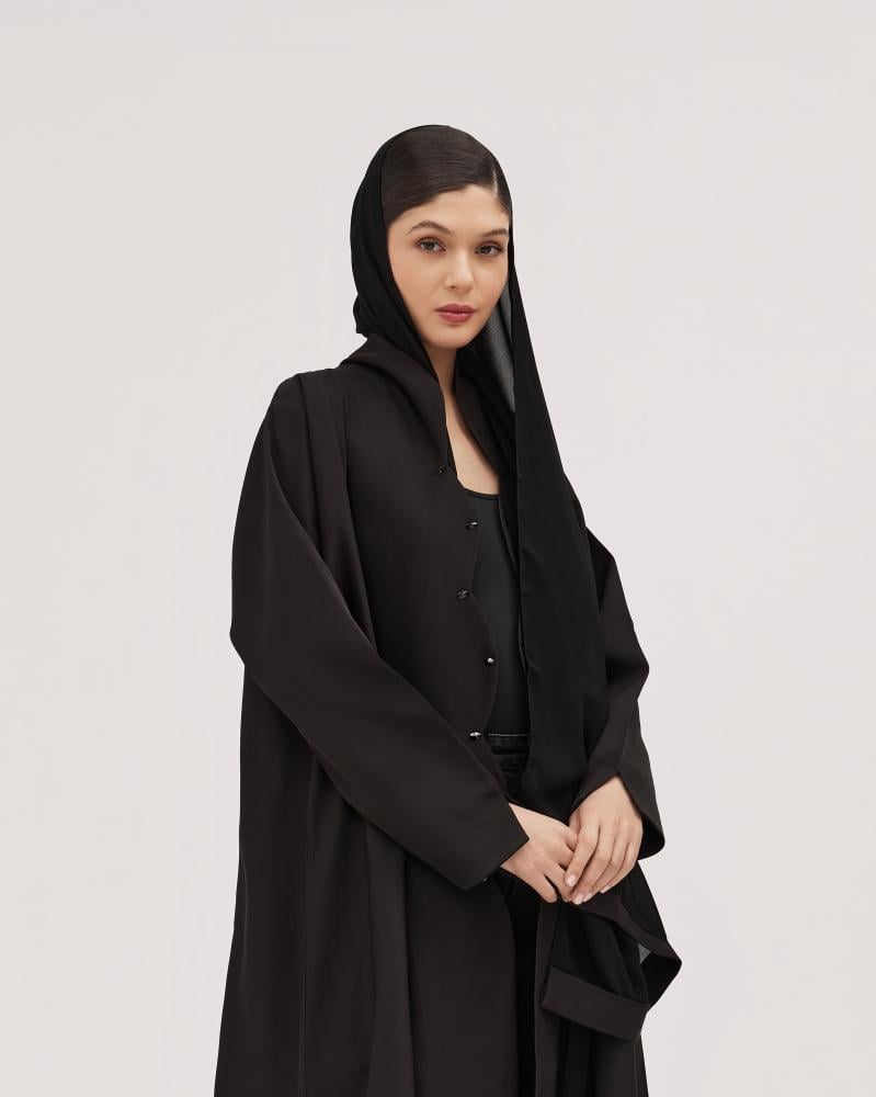 عبايات سوروزيه – عباية بلاك بيري كلوش بتصميم بوكس وجيوب جانبية – لون أسود