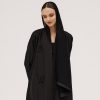 عبايات سوروزيه – عباية انترنت دبل كلوش سوداء مزينة بخطوط طولية مع فصوص سوداء على الأكمام