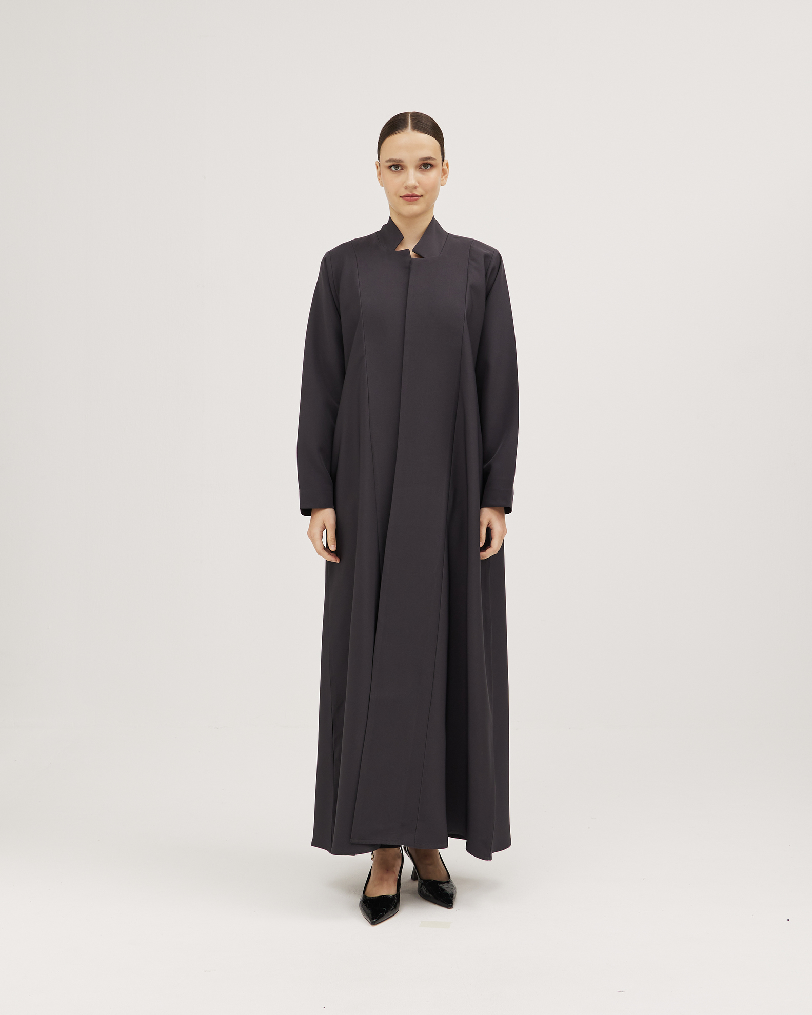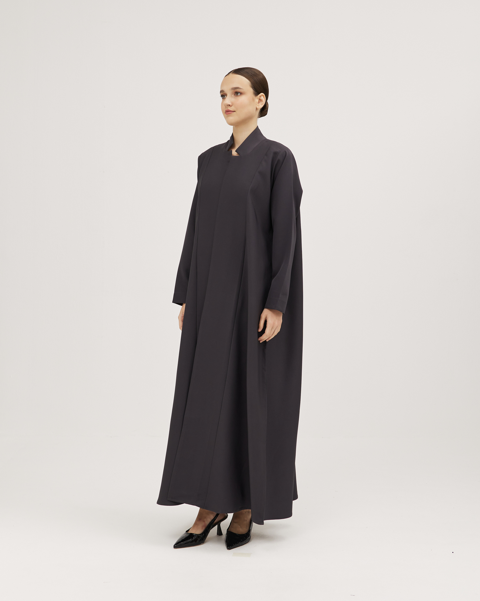 عبايات سوروزيه – عبايات لف سوداء كتان نص كلوش بتطريز هاري مشجر