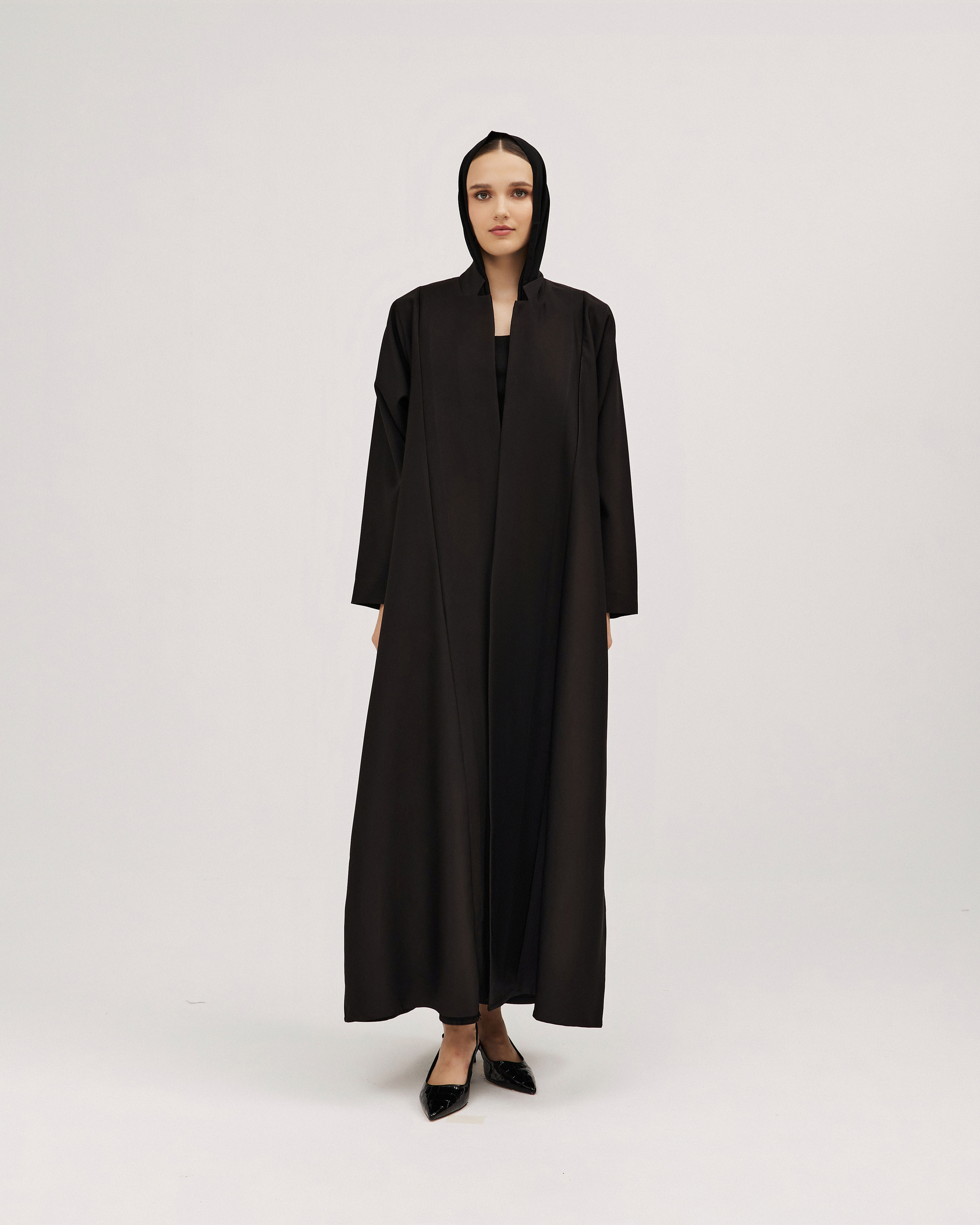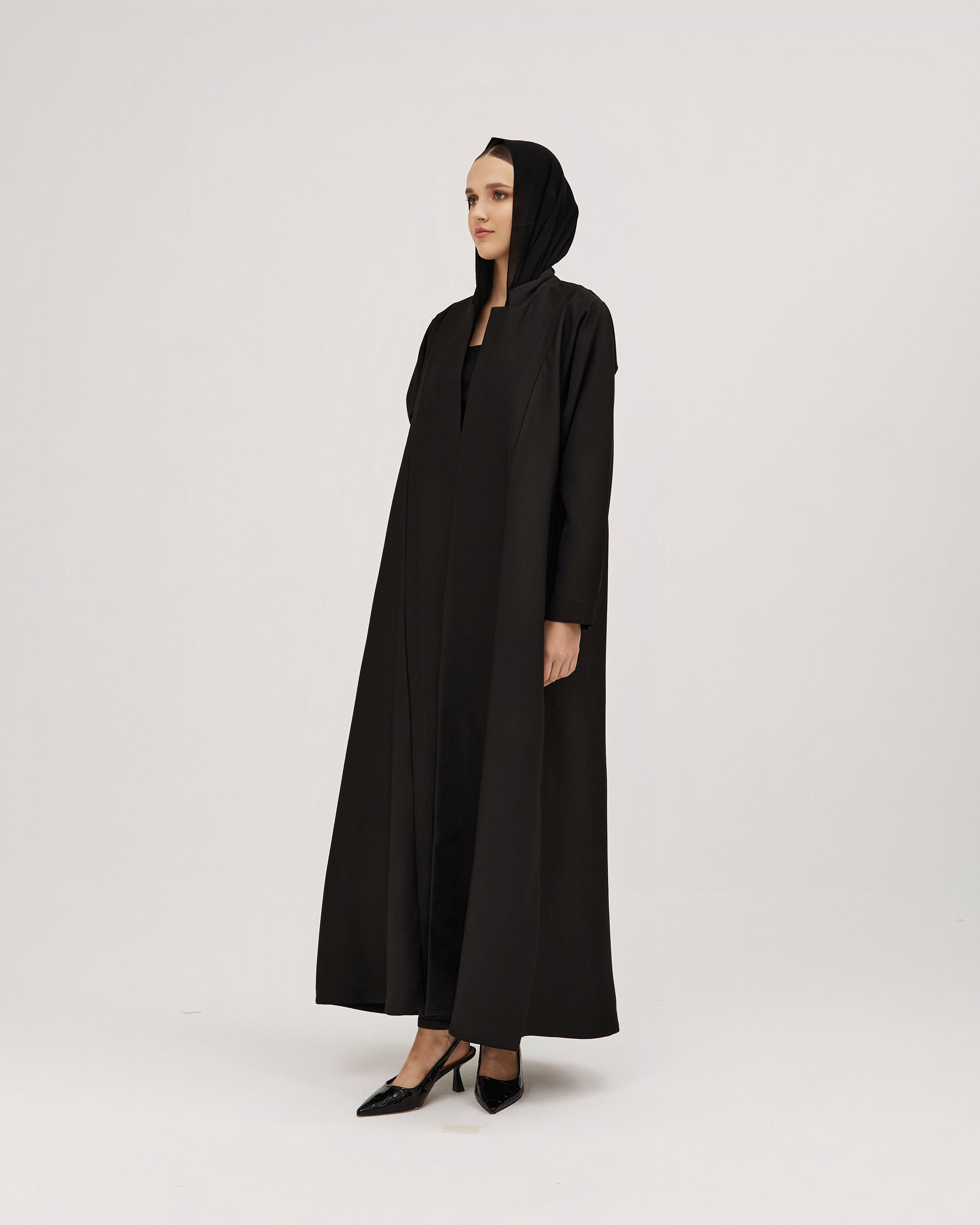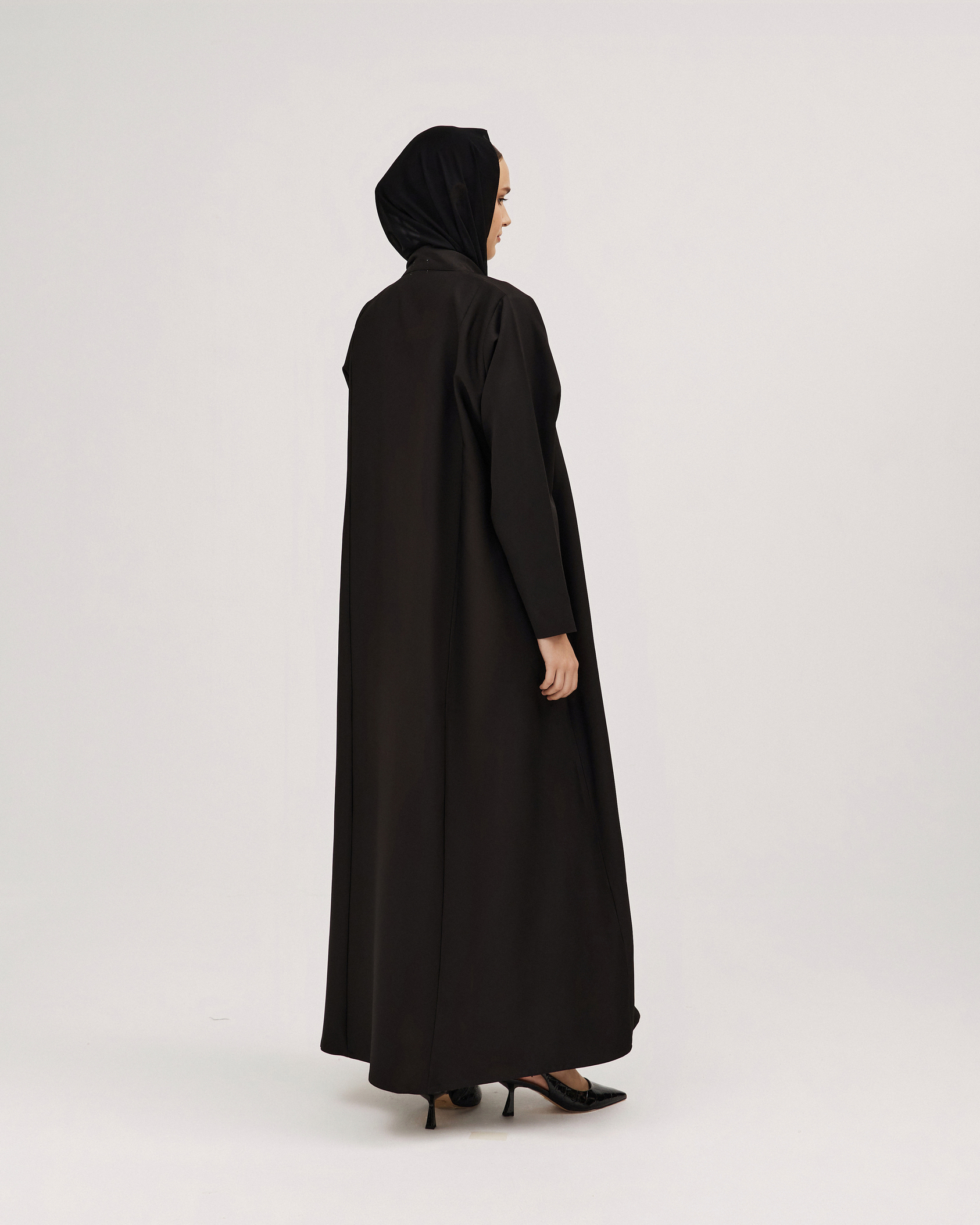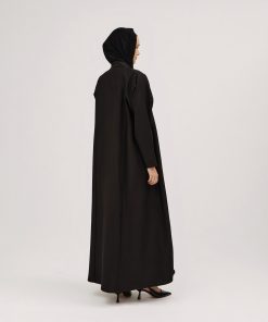 عبايات سوروزيه – عباية إنترنت دبل كلوش بتصميم طقطق وأكمام واسعة – لون أسود