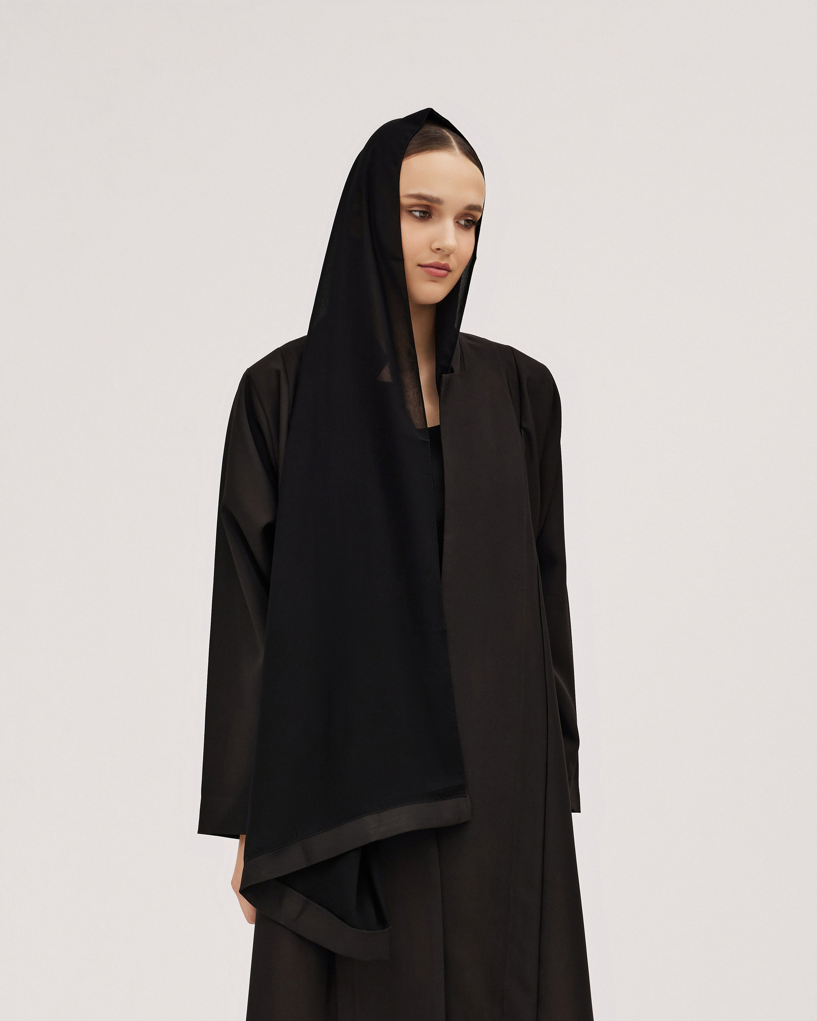 عبايات سوروزيه – عباية سودا لنن بتطريز ناعم وأناقة راقية