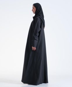 عبايات سوروزيه – عباية إنترنت دبل كلوش بتصميم طقطق وأكمام واسعة – لون أسود