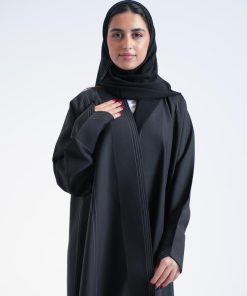 عبايات سوروزيه – عباية انترنت دبل كلوش سوداء مزينة بخطوط طولية مع فصوص سوداء على الأكمام