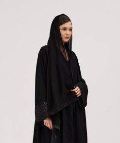 عبايات سوروزيه – عبايات لف سوداء كتان نص كلوش بتطريز هاري مشجر