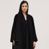 عبايات سوروزيه – عبايات كتان نص كلوش مكسره بأكمام جكار – أسود