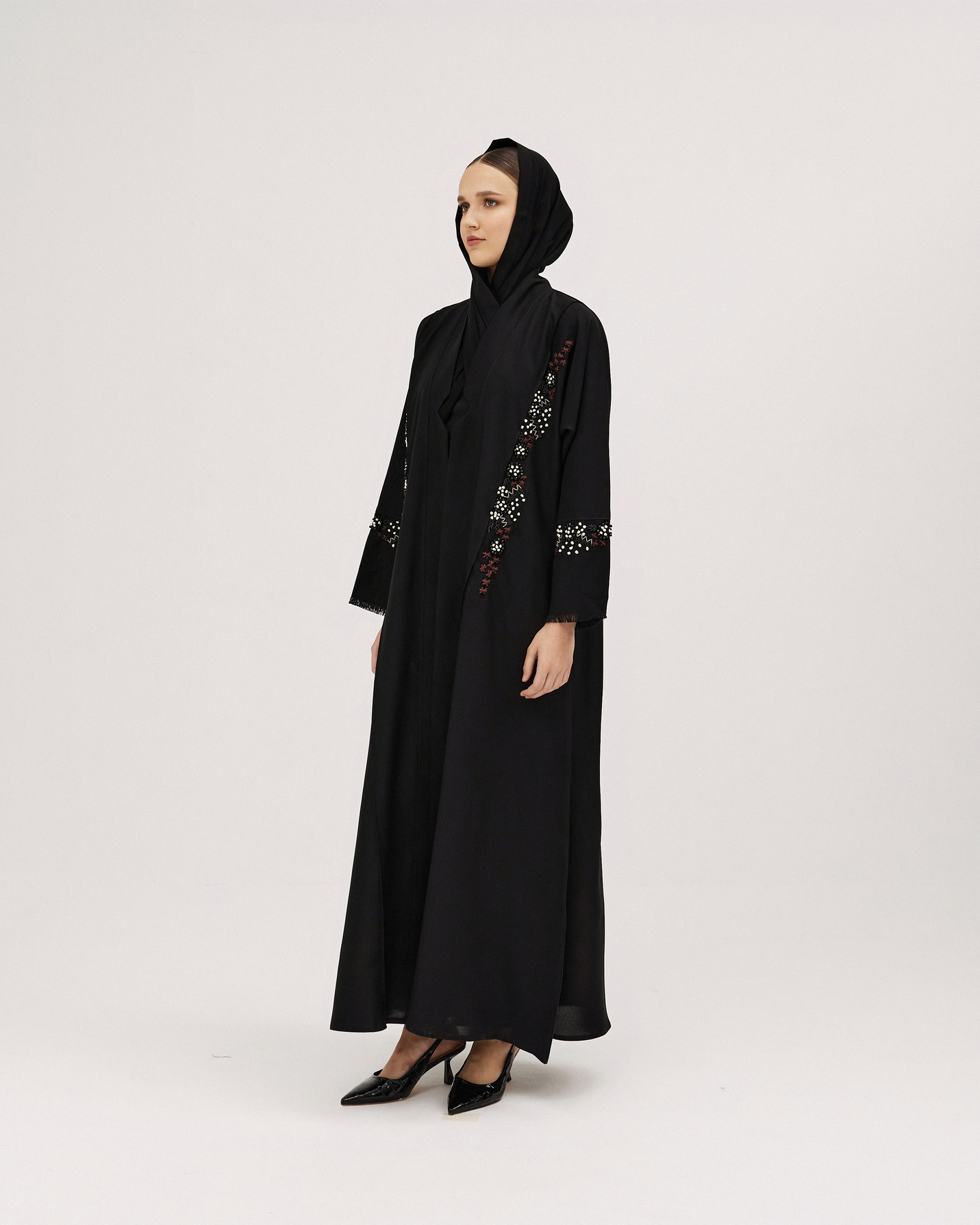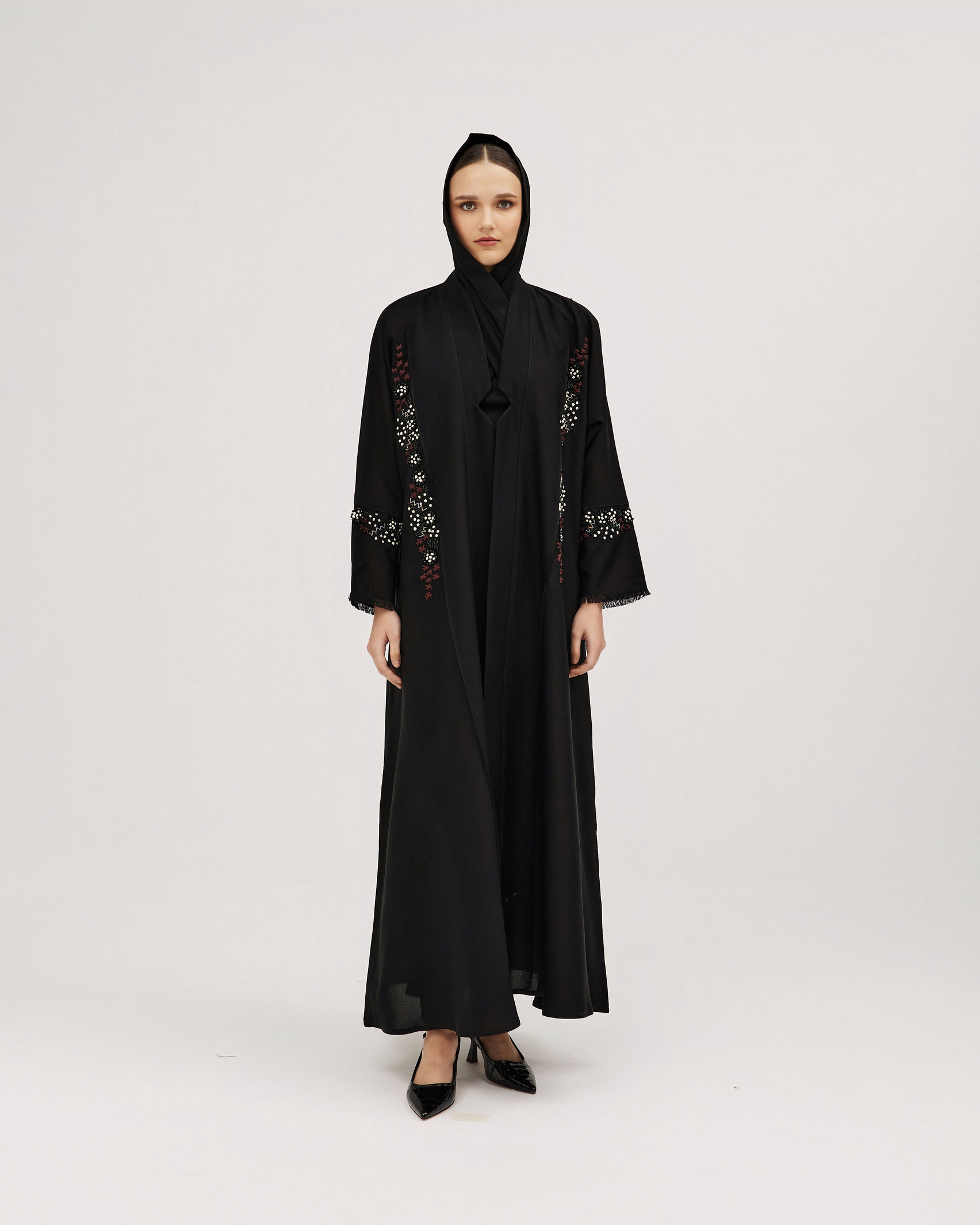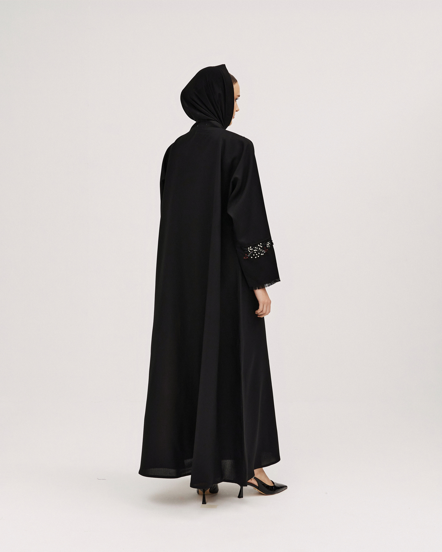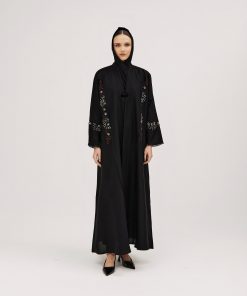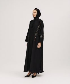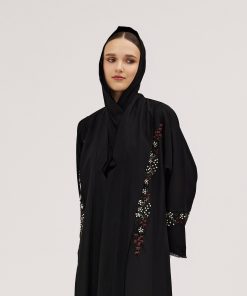 عبايات سوروزيه – عباية باربي كلوش بتطريز هاري وكريستال – أسود لف
