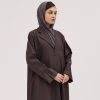 عبايات سوروزيه – عباية كريب كلوش بتصميم لف وياقة طولية سادة – فيراني