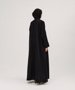 عبايات سوروزيه – عباية باربي كلوش لف بكم مقلوب وبطانة مشجرة مغطاة بشيفون – سوداء