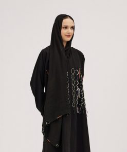 عبايات سوروزيه – عباية سودا لنن بتطريز ناعم وأناقة راقية