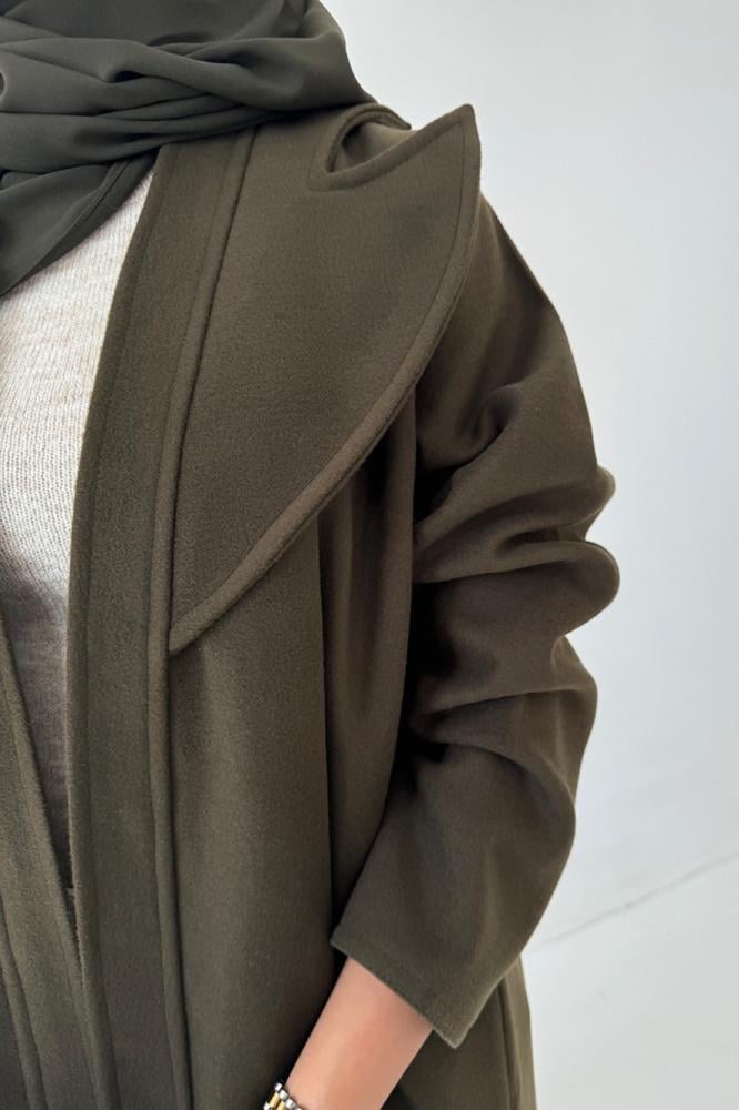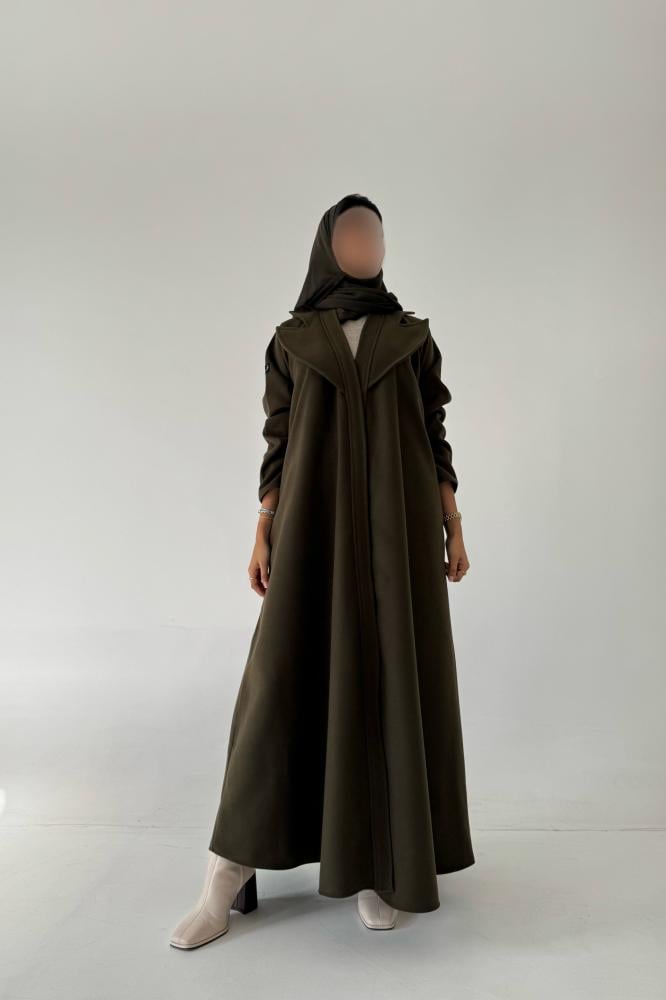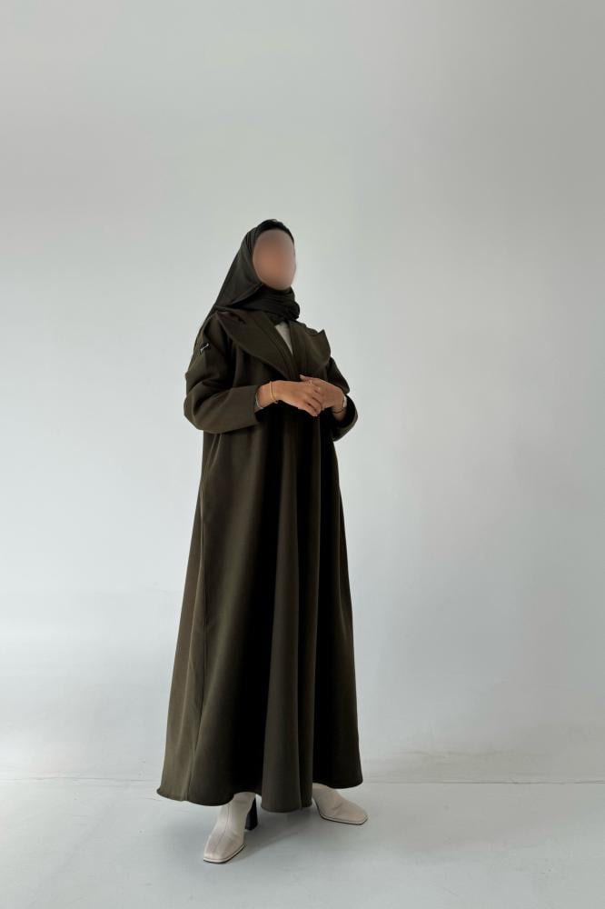 لون العباية: زيتي ملحقات العباية: طرحة ,نوع القماش: جوخالقصة: ربع كلوش طريقه الكوي : يفضل الكوي بالبخارطريقة الغسيل : غسيل بخار للحفاظ على العباية