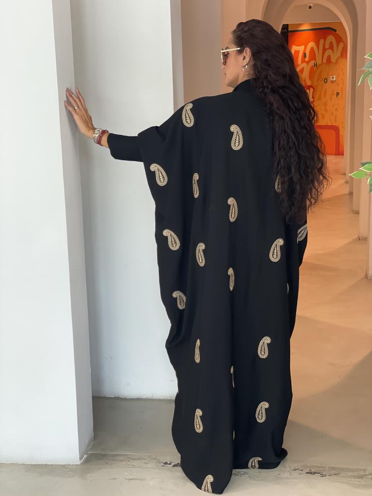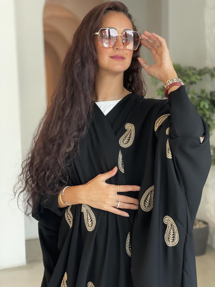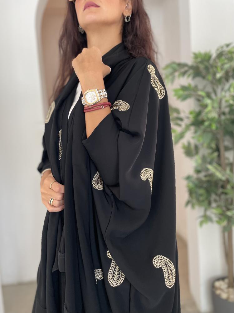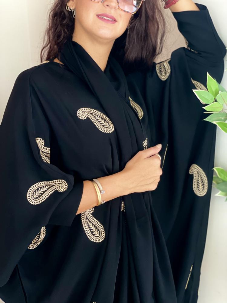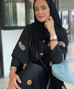 عزة المتميزة – بشت اسود مطرز بالذهبي