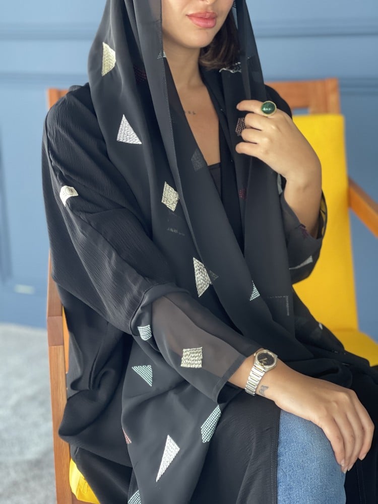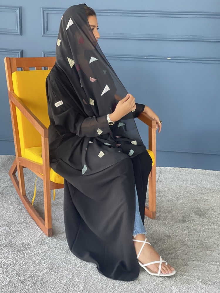عبايات بيست – عباية عملية بتطريز على الكم باللون الاسود