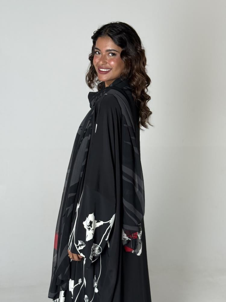 عبايات بيست – عباية نص كلوش بتدخيلة جاكار فنية-1320