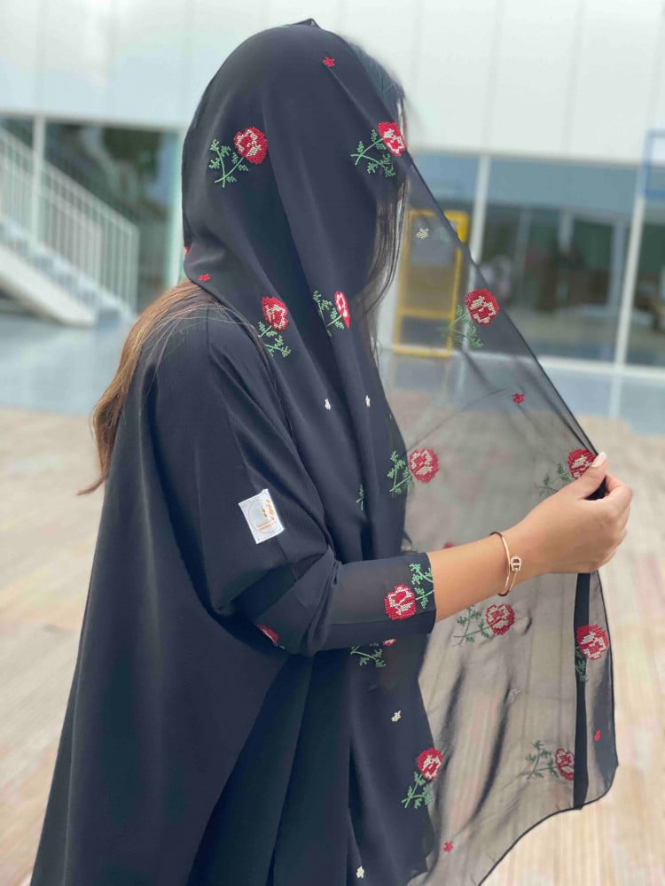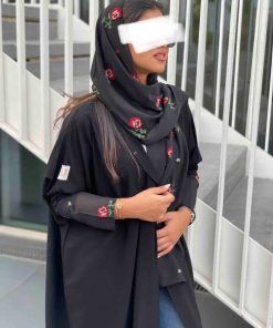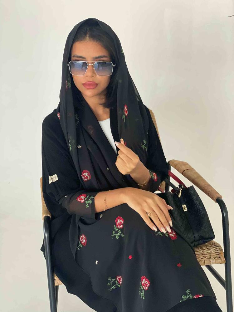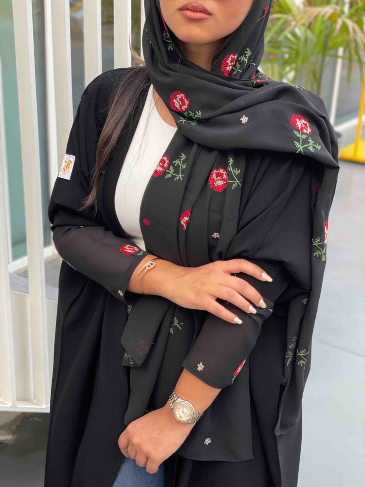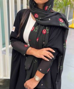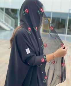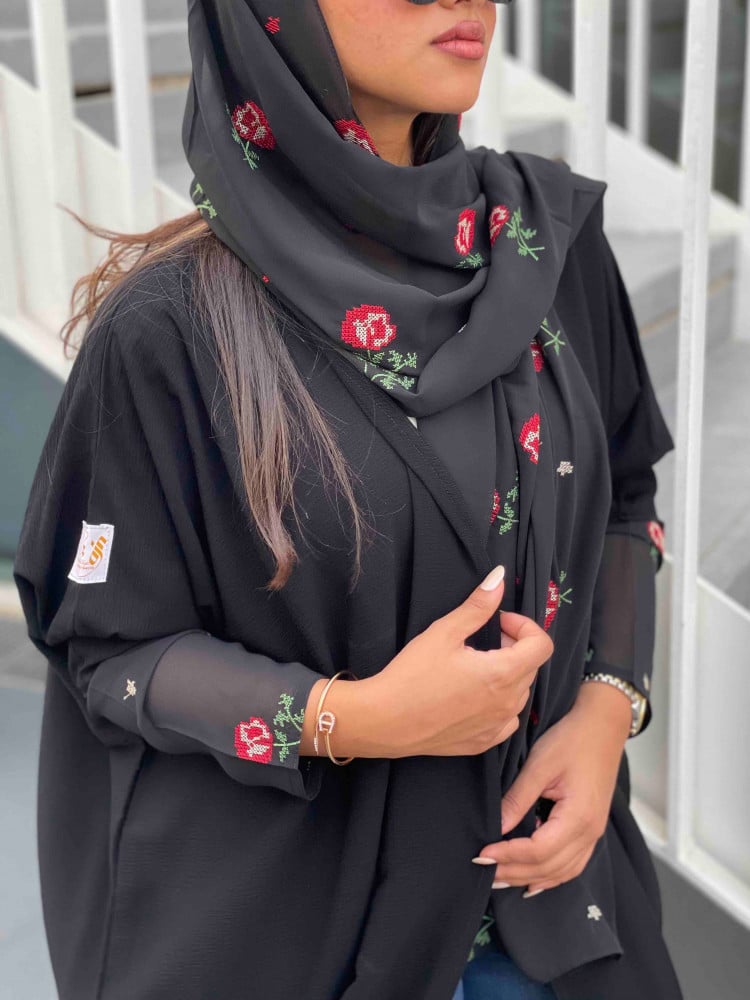عبايات بيست – عباية عملية بتطريز على الكم باللون الاسود