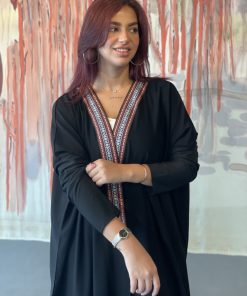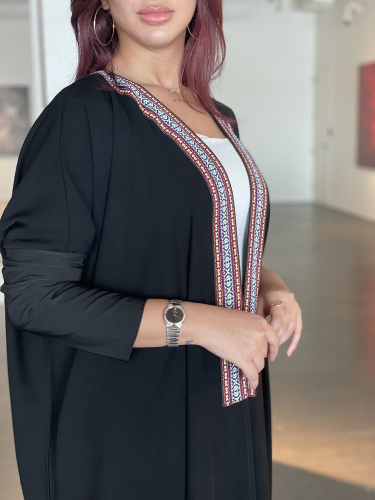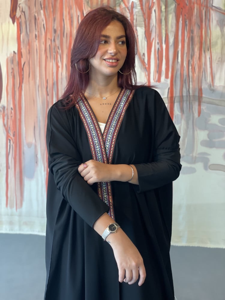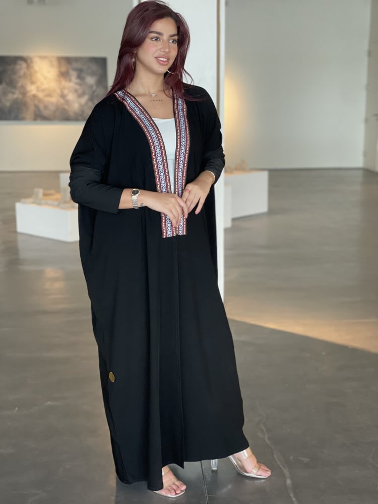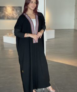 عبايات بيست – عباية عملية بتطريز على الكم باللون الاسود
