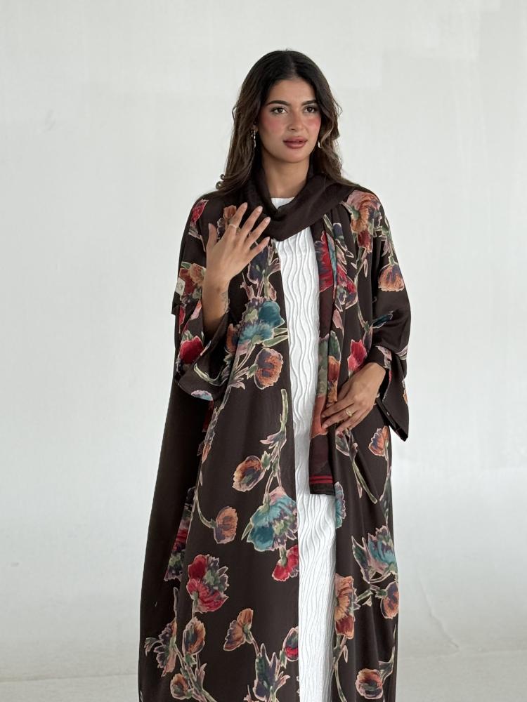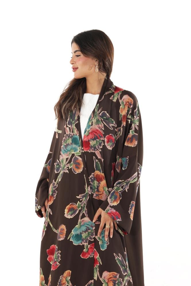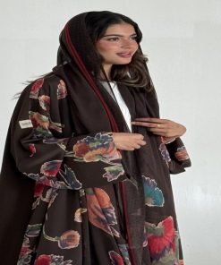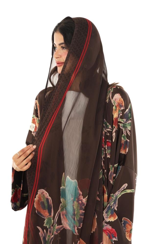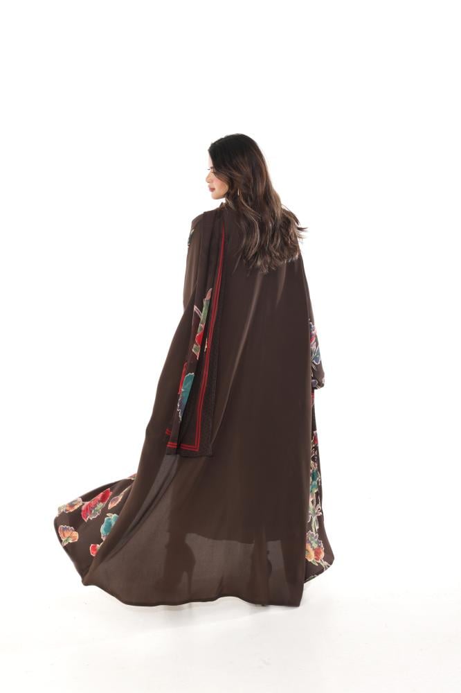 عزة المتميزة – عباية حرير الورود بني 1