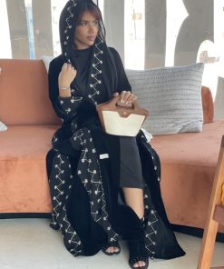 عبايات بيست – عباية عملية بتطريز على الكم باللون الاسود