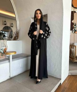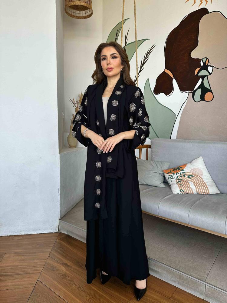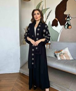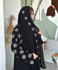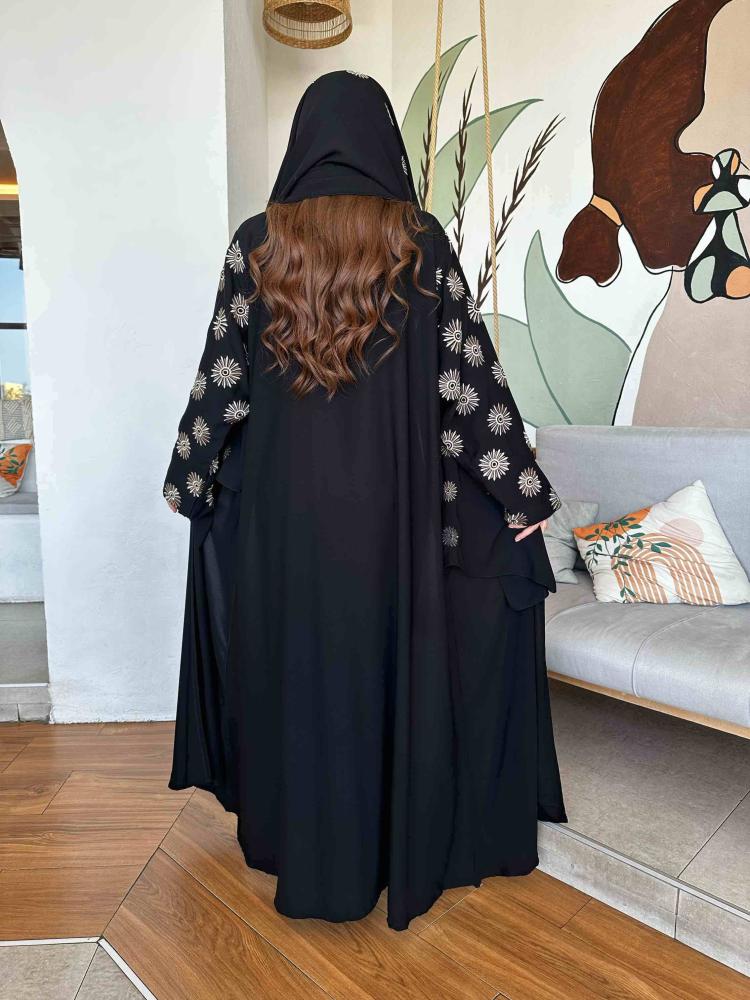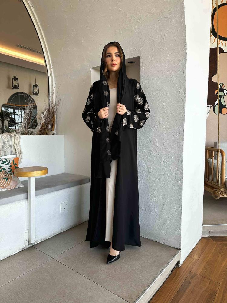 عبايات بيست – عباية عملية بتطريز على الكم باللون الاسود