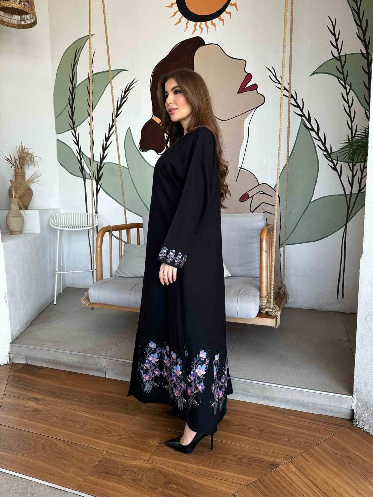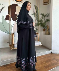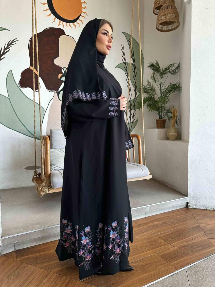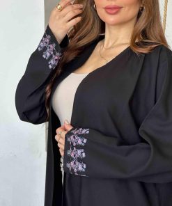 عبايات بيست – عباية عملية بتطريز على الكم باللون الاسود