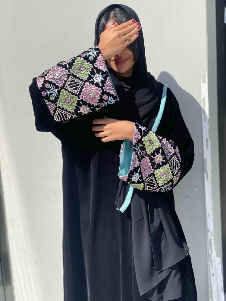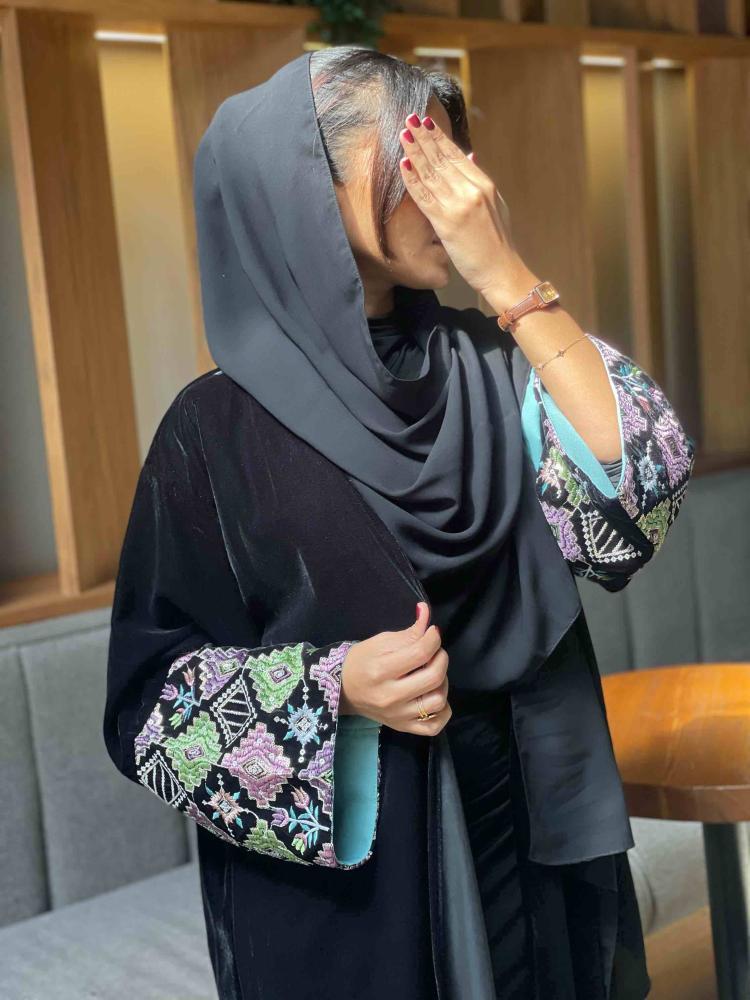عبايات بيست – عباية عملية بتطريز على الكم باللون الاسود