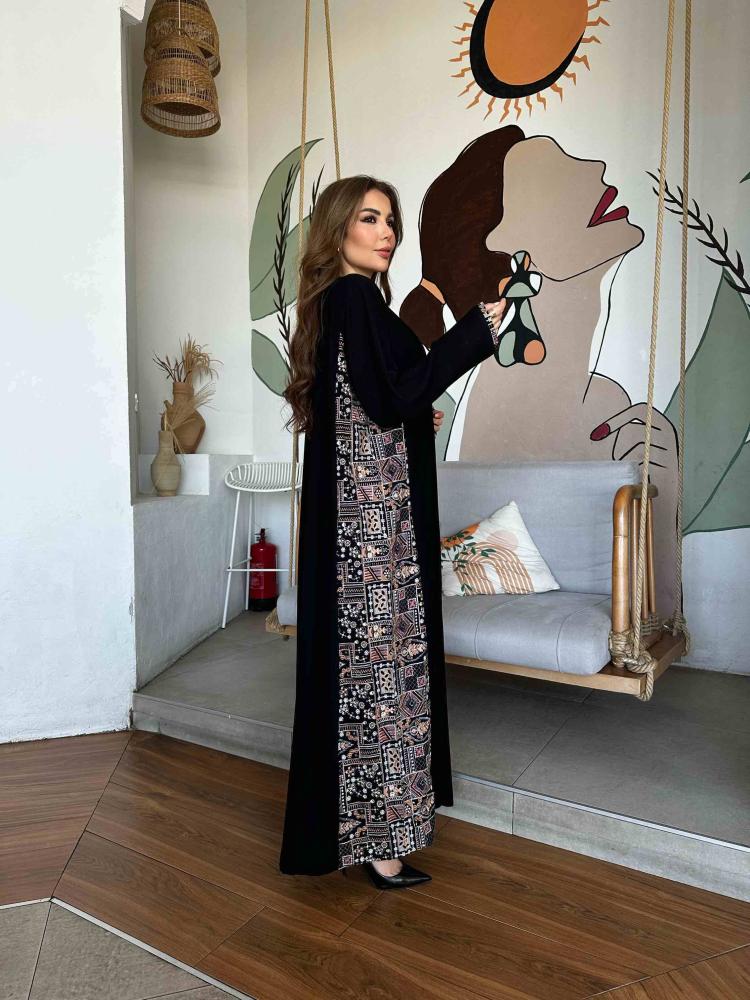 عبايات بيست – عباية نص كلوش أنيقة تدخيلة ذهبي-901
