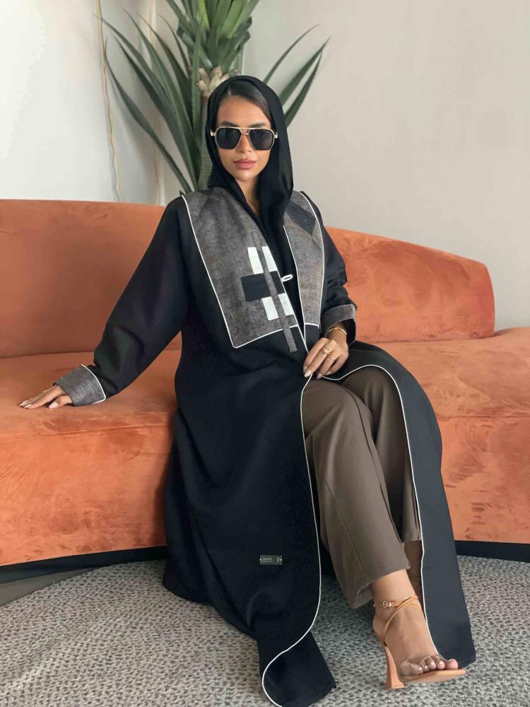 عبايات بيست – عباية عملية بتطريز على الكم باللون الاسود