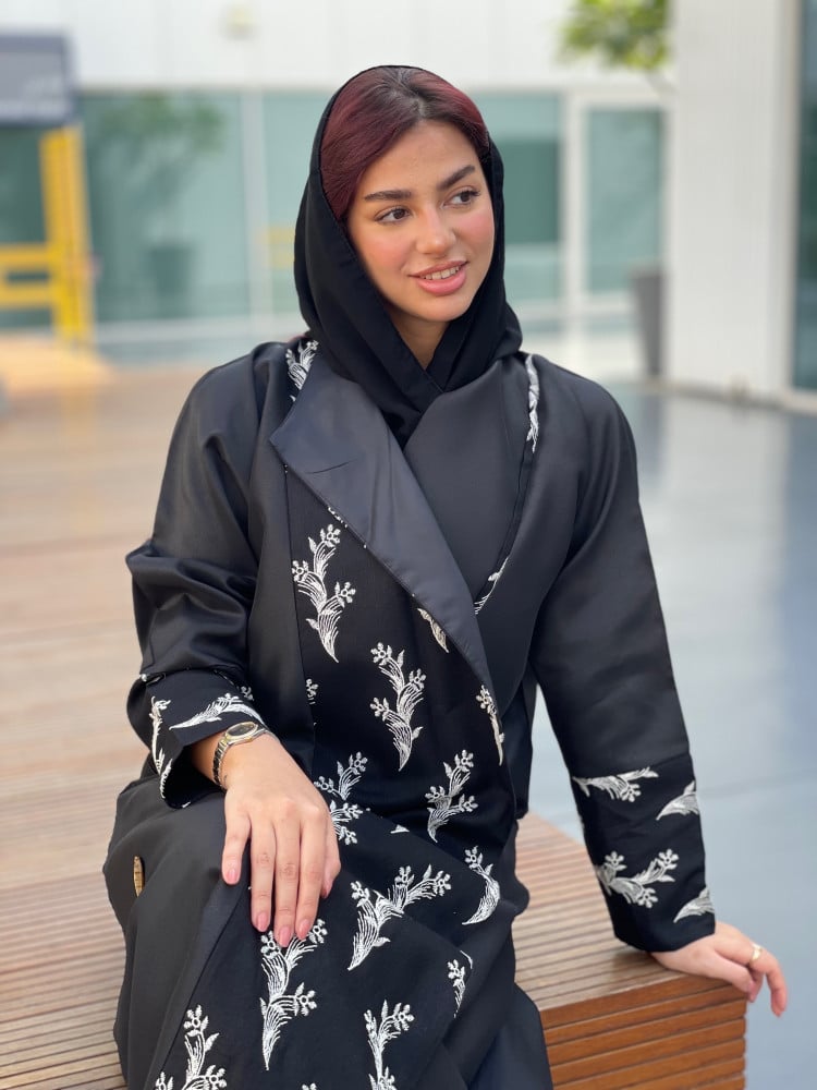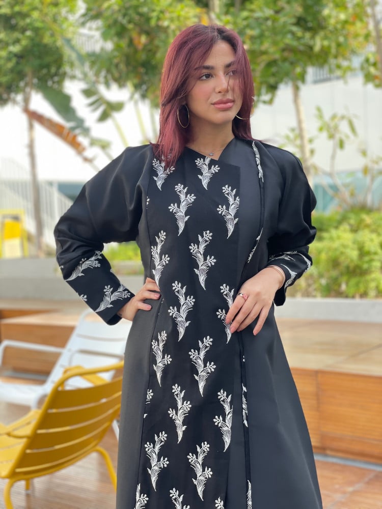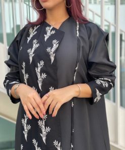 عبايات بيست – عباية عملية بتطريز على الكم باللون الاسود