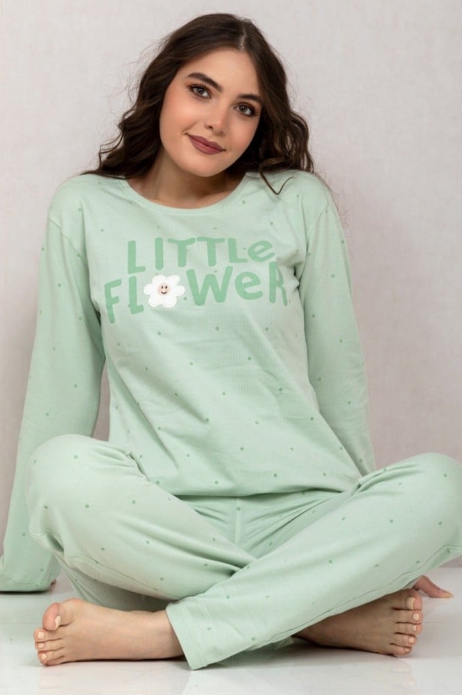 فاميلي كوتون – بيجامة نسائية ريب (تركوازي – بطول الكاحل)
