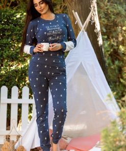 فاميلي كوتون – بيجامة نسائية ريب (أزرق – بطول الكاحل)