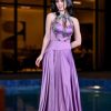 فستان وردي بتطريز جانبي ولمسة أنثوية راقية