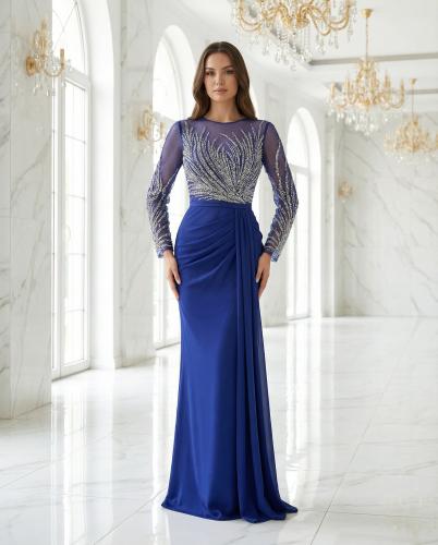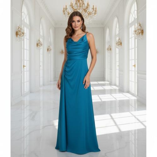 فستان سهرة طويل بيبي بلو بقصة أنيقة ولمسة فاخرة