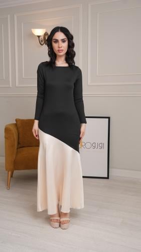 فستان أسود وأبيض بتصميم أنيق ولمسة عصرية راقية