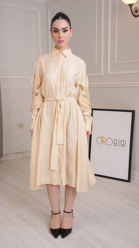 فستان أبيض نص كم بتطريز ذهبي- أناقة ذهبية متكاملة