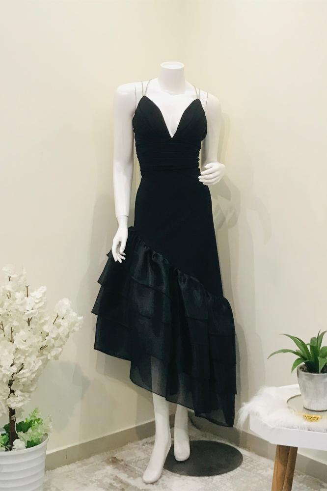 فستان بلاك مخملي مع لمسه شانتون – فستان بلاك مخملي مع لمسه شانتون