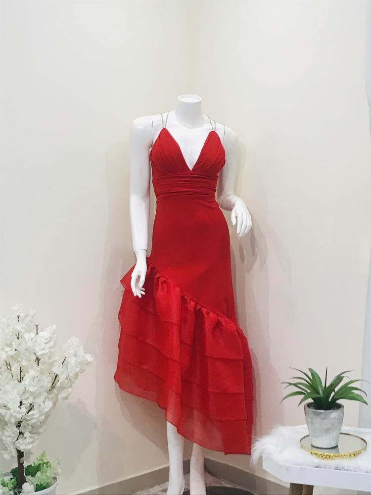 فستان تل طبقات مزين بنقشة صدر – فستان تل طبقات مزين بنقشة صدر