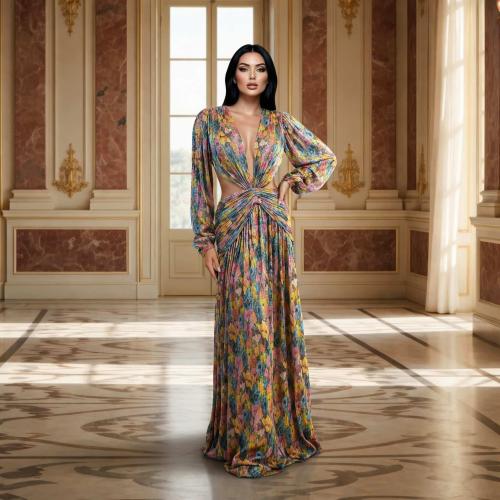 فستان سهرة طويل فخم – عنابي بتصميم مميز لطلة ملكية