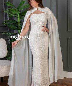 فستان سترابليس مطرز مع اورجنزا – فستان سترابليس مطرز مع اورجنزا
