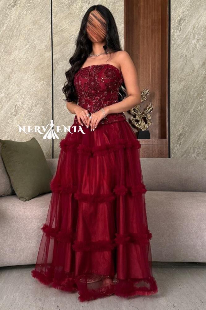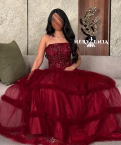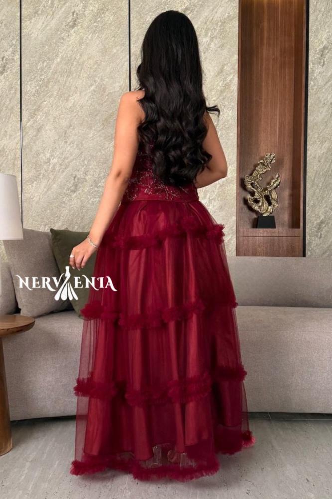 فستان سترابليس مطرز مع اورجنزا – فستان سترابليس مطرز مع اورجنزا