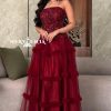 فستان سترابليس مطرز مع اورجنزا – فستان سترابليس مطرز مع اورجنزا