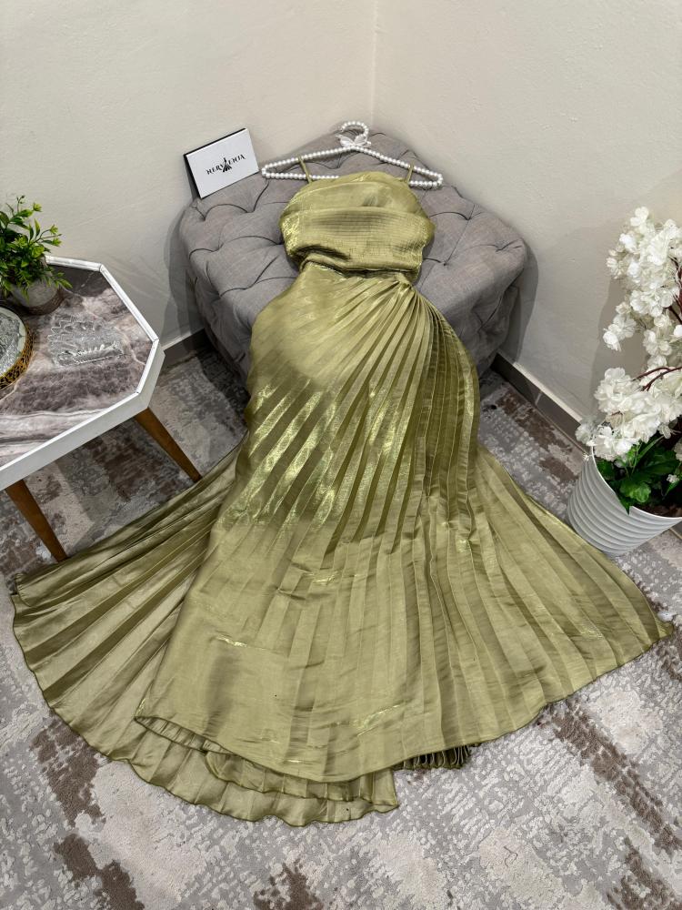 فستان بيورا كرنكل لامع مع شال مطوي – فستان بيورا كرنكل لامع مع شال مطوي