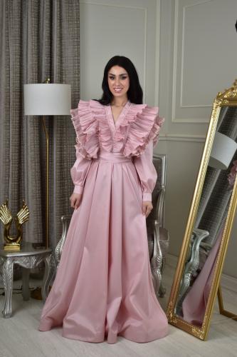 فستان وردي بتطريز جانبي ولمسة أنثوية راقية