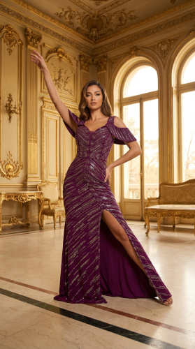 فستان سهرة برغندي طويل شك كامل – إطلالة ملكية ساحرة لأفخم مناسباتك