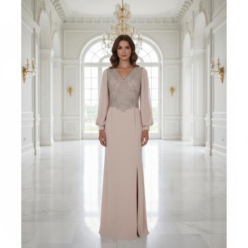 فستان سهرة طويل فخم – عنابي بتصميم مميز لطلة ملكية