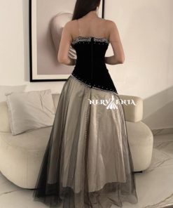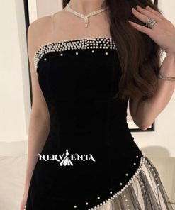 فستان بلاك مخملي مع لمسه شانتون – فستان بلاك مخملي مع لمسه شانتون