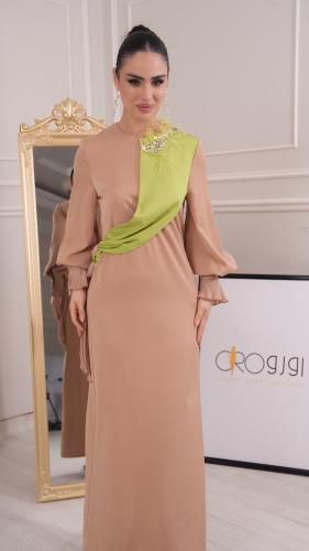 فستان سهرة طويل فخم – عنابي بتصميم مميز لطلة ملكية