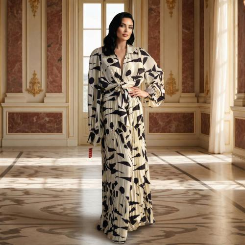 فستان أسود وأبيض بتصميم أنيق ولمسة عصرية راقية